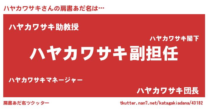 | 男性向けラノベタイトル風あだ名 | 『ハヤカワサキという概念が存在しない退屈な世界 』 |