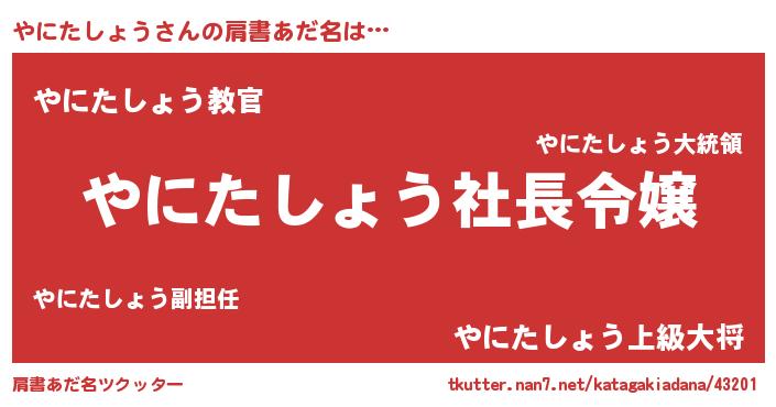 | 男性向けラノベタイトル風あだ名 | 『やにたしょうの憂鬱』 |