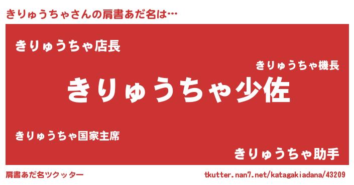 | 女子向けラノベタイトル風あだ名 | 『きりゅうちゃの玉の輿計画!』 |