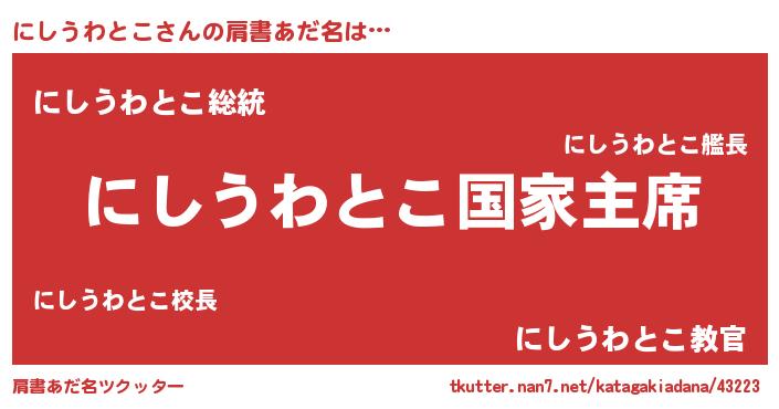 | 意味不明あだ名 | 『にしうわとこフォーエバー』 |