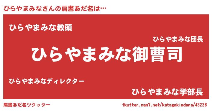| 伝説のあだ名 | 『伝説のスナイパーひらやまみな』 |