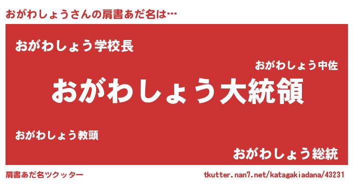 | 意味不明あだ名 | 『おがわしょうフォーエバー』 |
