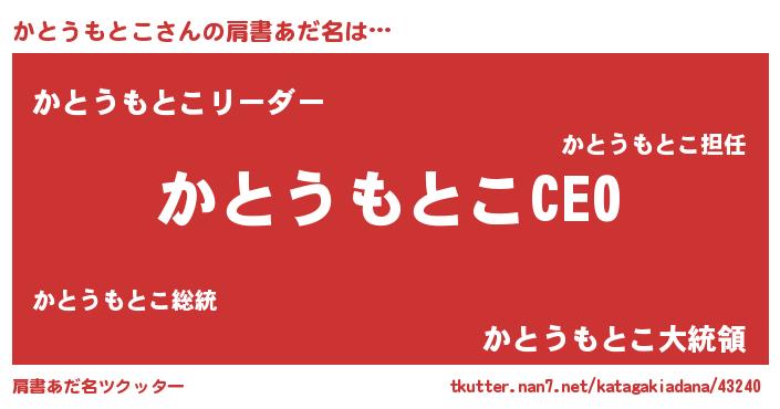 | ヒーロー風カッコイイあだ名 | 『スーパーカトウモトコ』『黄金騎士カト』 |