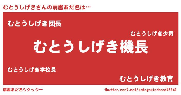 | 男性向けラノベタイトル風あだ名 | 『緋弾のムトウシゲキ』 |