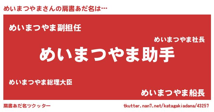 | ヘコむあだ名 | 『めいまつやま(笑)』『めいっふぃ~』 |