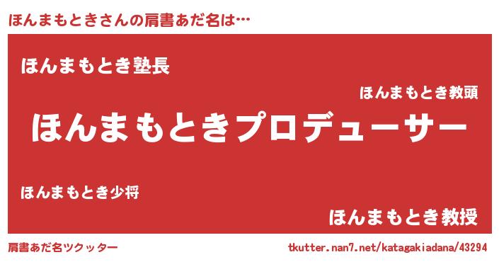 | 男性向けラノベタイトル風あだ名 | 『はたらくほんまもときさま!』 |