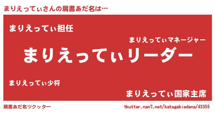 | 男性向けラノベタイトル風あだ名 | 『ダンジョンにまりえってぃを求めるのは間違っているだろうか』 |