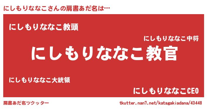 | ヒーロー風カッコイイあだ名 | 『仮面ニシダー』『ネオニシモリナナコ』 |