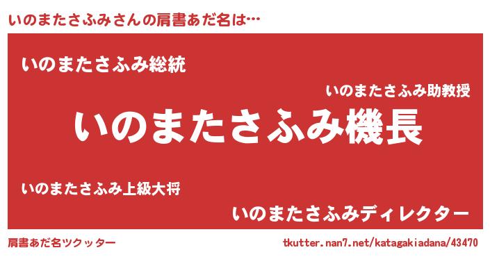 | 意味不明あだ名 | 『自称いのまたさふみ』 |
