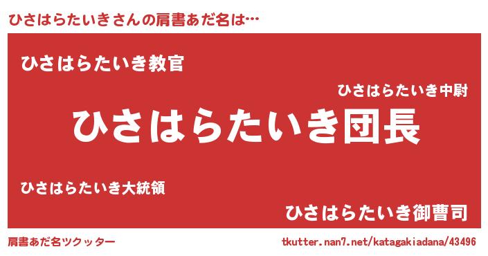 | 女子向けラノベタイトル風あだ名 | 『ひさはらたいきは平凡を望む』 |