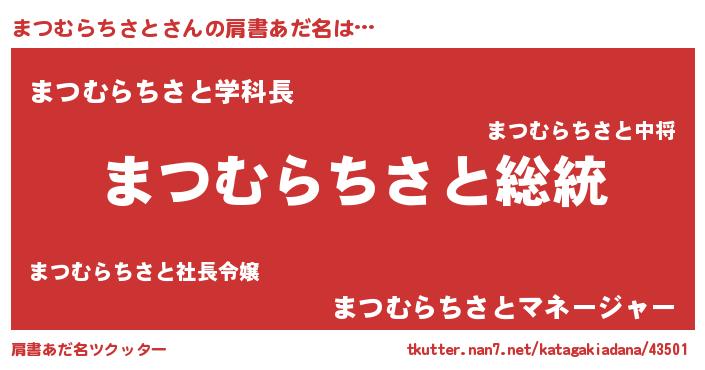 | 意味不明あだ名 | 『自称まつむらちさと』 |