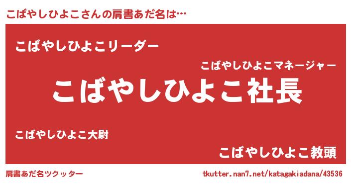 | ポケモン風あだ名 | 『コバチュウ』『ヒコバヤシヒヨコ』 |