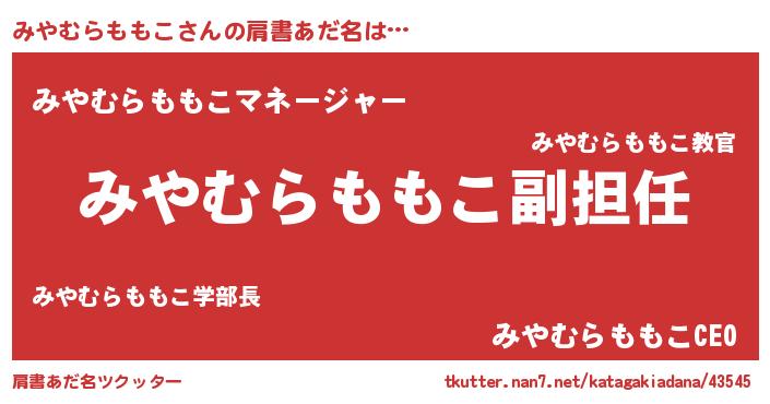 | 男性向けラノベタイトル風あだ名 | 『誰もが恐れるあのみやむらももこが、ぼくの専属メイドになるようです。』 |