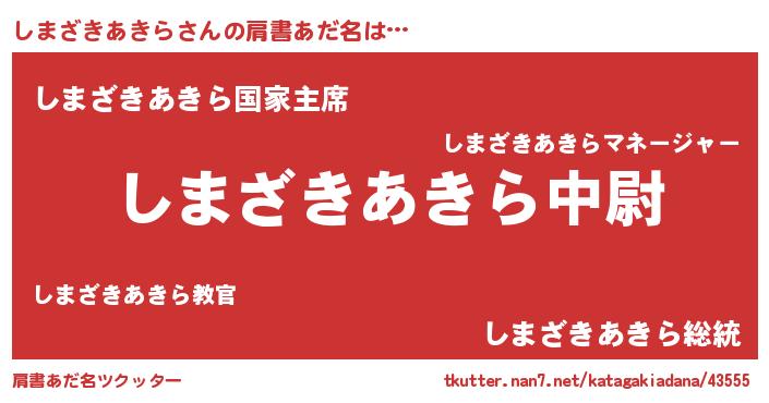 | 男性向けラノベタイトル風あだ名 | 『シマザキアキラスレイヤー』 |