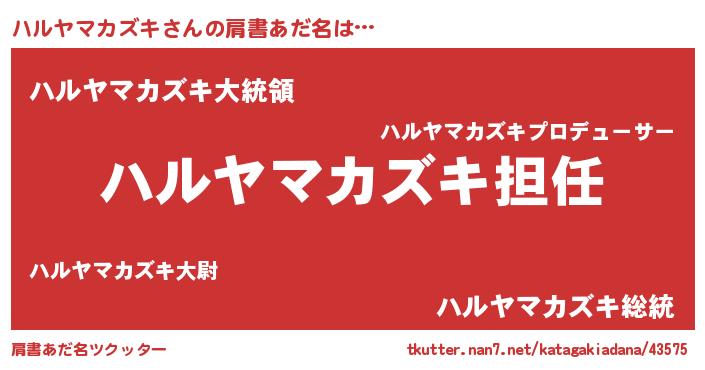 | 意味不明あだ名 | 『永久保存ハルヤマカズキ』 |
