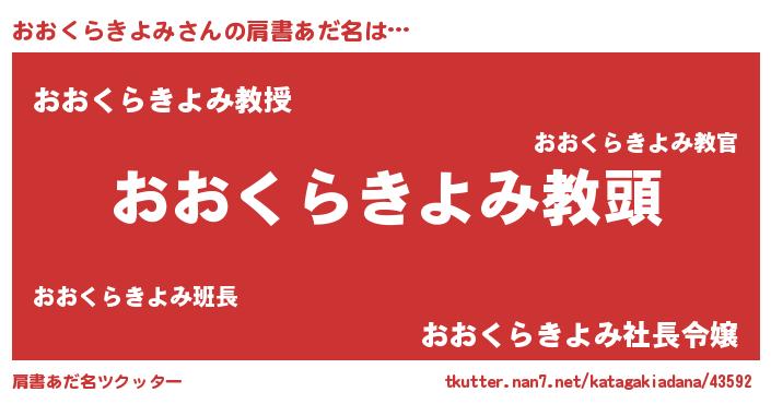 | 男性向けラノベタイトル風あだ名 | 『おおくらきよみという概念が存在しない退屈な世界 』 |