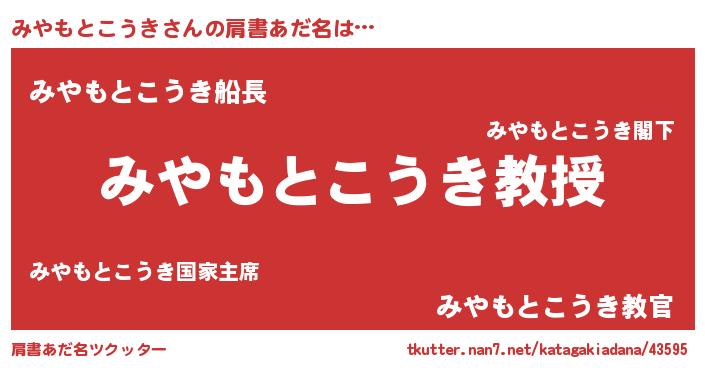 | 男性向けラノベタイトル風あだ名 | 『ノーゲーム・ノーミヤモトコウキ』 |