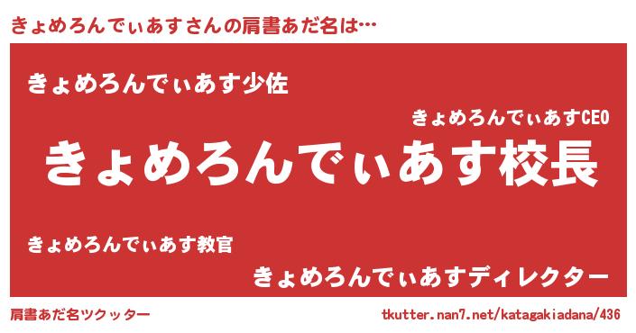 | 男性向けラノベタイトル風あだ名 | 『きょめろんでぃあすという概念が存在しない退屈な世界 』 |