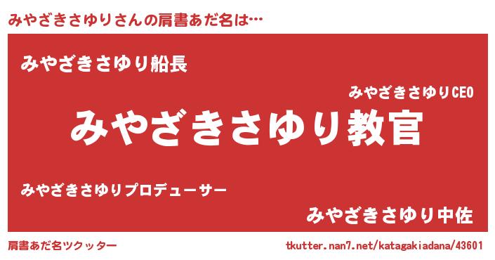 | 男性向けラノベタイトル風あだ名 | 『魔弾の王とみやざきさゆり』 |