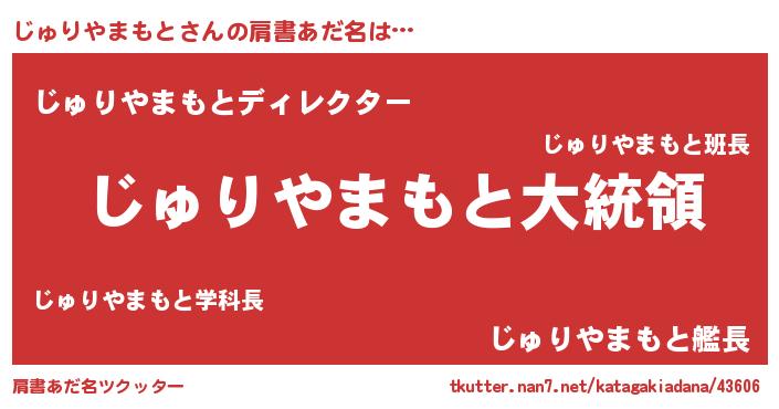 | 男性向けラノベタイトル風あだ名 | 『やはりじゅりやまもとの青春ラブコメはまちがっている 』 |