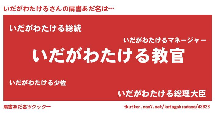 | 意味不明あだ名 | 『住所不定無職いだがわたける(59歳)』 |