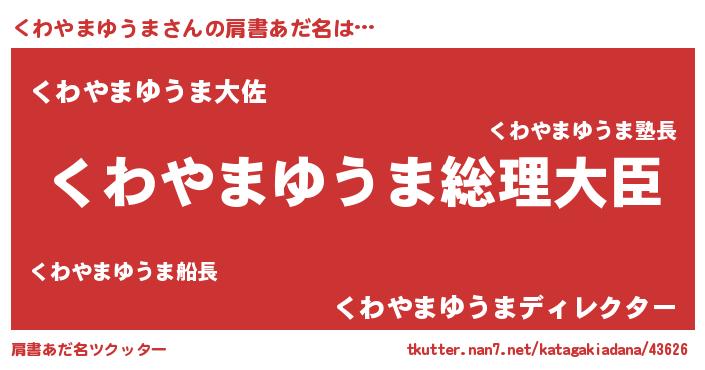 | 意味不明あだ名 | 『くわやまゆうまフォーエバー』 |