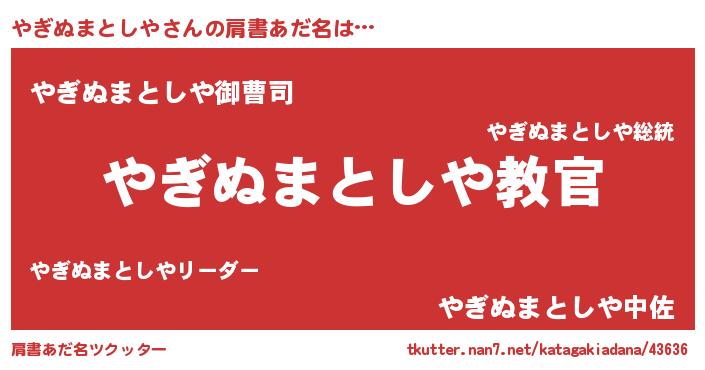 | 料理風あだ名 | 『やぎぬまとしやのカルパッチョ風』 |