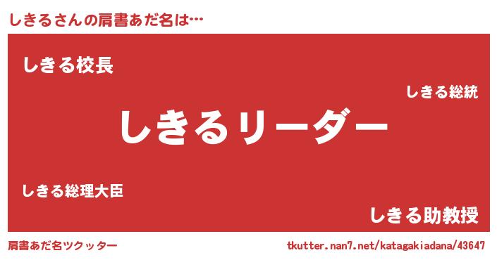 | ヘコむあだ名 | 『しきぷりん』『しきる(笑)』 |