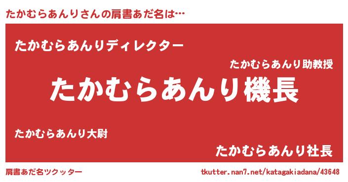 | ヒーロー風カッコイイあだ名 | 『スーパータカムラアンリ』 |