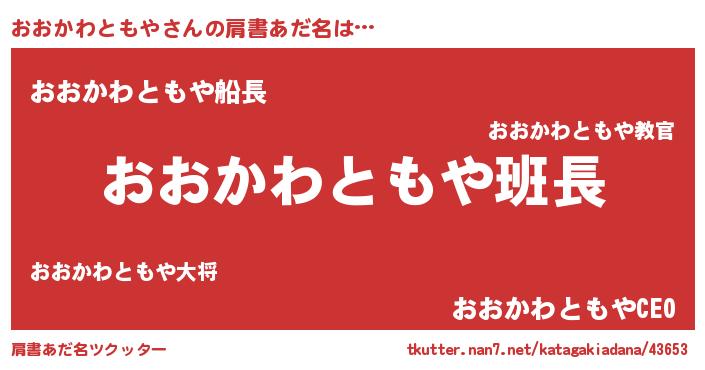 | 意味不明あだ名 | 『とにかく怪しいおおかわともや』 |
