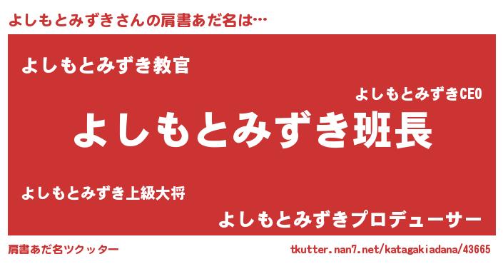 | 男性向けラノベタイトル風あだ名 | 『よしもとみずきの嫁は女の子じゃないと思った?』 |