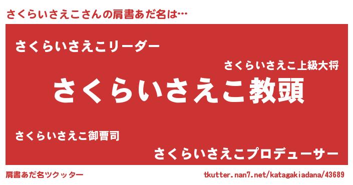 | ヘコむあだ名 | 『さくらいさえこ(笑)』『さくっちょ』 |