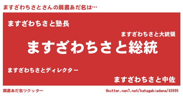 | 男性向けラノベタイトル風あだ名 | 『Re:ますざわちさとから始める異世界生活』 |