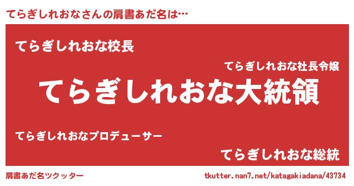 | 意味不明あだ名 | 『てらぎしれおなフォーエバー』 |