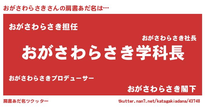 | 女子向けラノベタイトル風あだ名 | 『おがさわらさき恋絵巻』 |