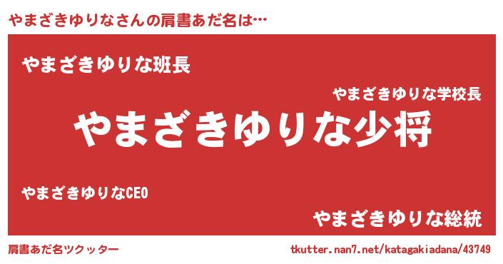 | 男性向けラノベタイトル風あだ名 | 『やまざきゆりな~年齢イコール彼女いない歴の魔法使い~』 |