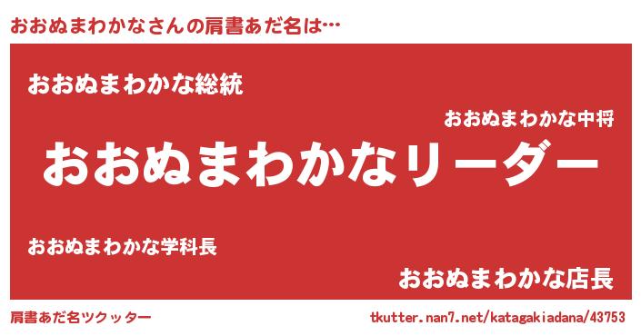 | 女子向けラノベタイトル風あだ名 | 『おおぬまわかな様がみてる』 |