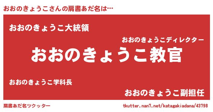 | 伝説のあだ名 | 『秘められし忍者おおのきょうこ』 |