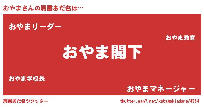 | ヒーロー風カッコイイあだ名 | 『最強戦士オヤマ』『幻影騎士オヤ』 |