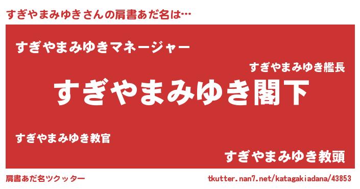 | 男性向けラノベタイトル風あだ名 | 『Re:すぎやまみゆきから始める異世界生活』 |