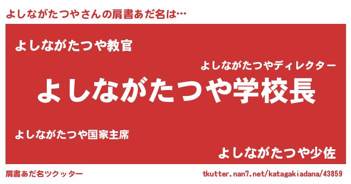 | 男性向けラノベタイトル風あだ名 | 『ノーゲーム・ノーヨシナガタツヤ』 |