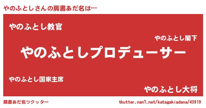 | ヒーロー風カッコイイあだ名 | 『仮面ヤノダー』『究極戦士ヤノフトシ』 |