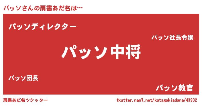 | 男性向けラノベタイトル風あだ名 | 『パッソ~年齢イコール彼女いない歴の魔法使い~』 |