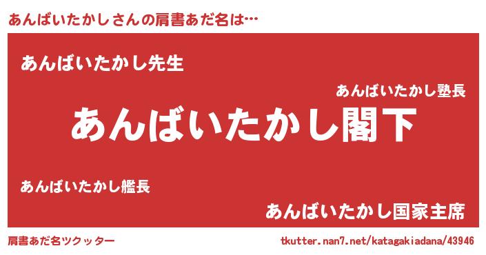 | 意味不明あだ名 | 『自称あんばいたかし』 |