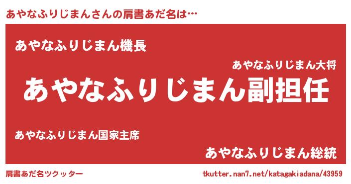 | ヒーロー風カッコイイあだ名 | 『ネオアヤナフリジマン』『仮面アヤダー』 |