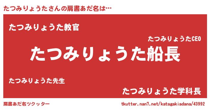 | ヒーロー風カッコイイあだ名 | 『仮面タツダー』『ネオタツミリョウタ』 |