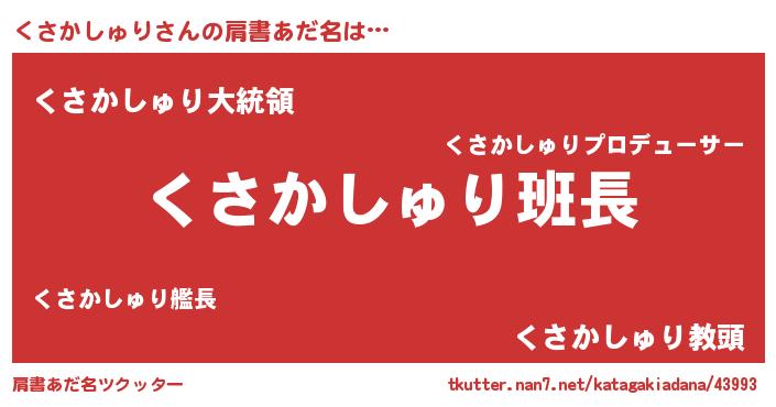 | ポケモン風あだ名 | 『ヒクサカシュリ』『クサカダネ』 |