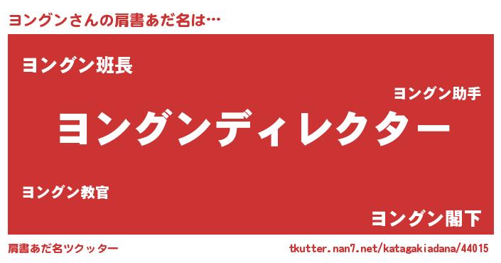 | 男性向けラノベタイトル風あだ名 | 『ヨングンに滅ぼされるだけの簡単なお仕事です』 |