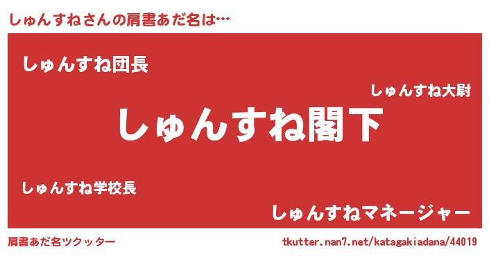 | 意味不明あだ名 | 『自称しゅんすね』 |