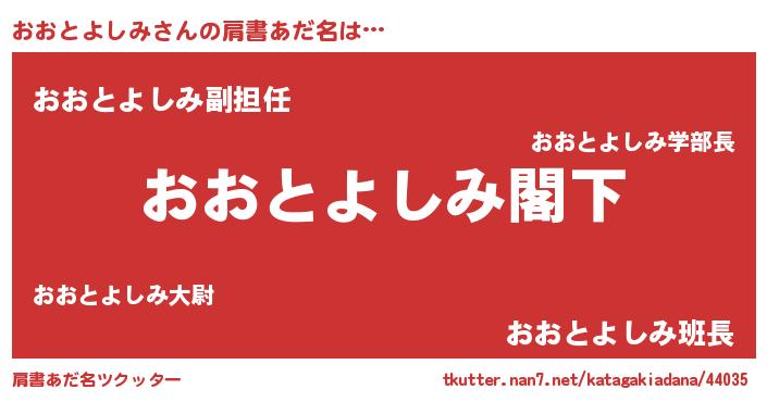 | 意味不明あだ名 | 『自称おおとよしみ』 |